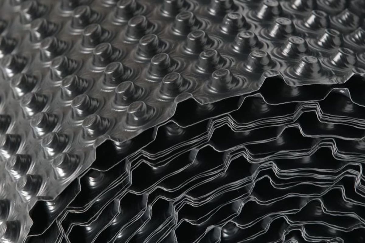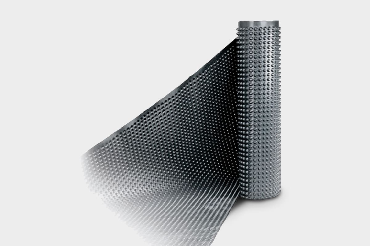 Colocado horizontalmente sobre una base de cimentación, protege los suelos contra la humedad ascendente. Gracias a sus protuberancias semiconoides, garantiza una excelente distribución de las cargas y crea una cámara de aire que favorece la circulación del aire debajo del pavimento, asegurando su impermeabilidad.