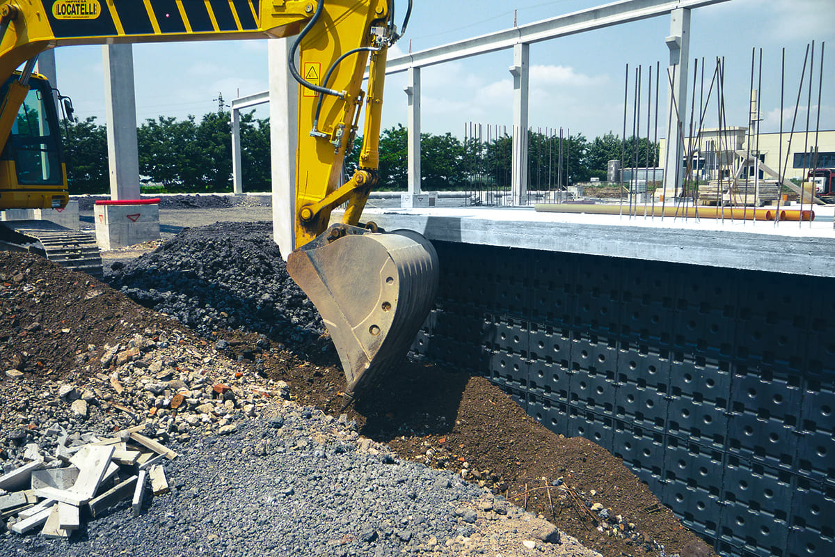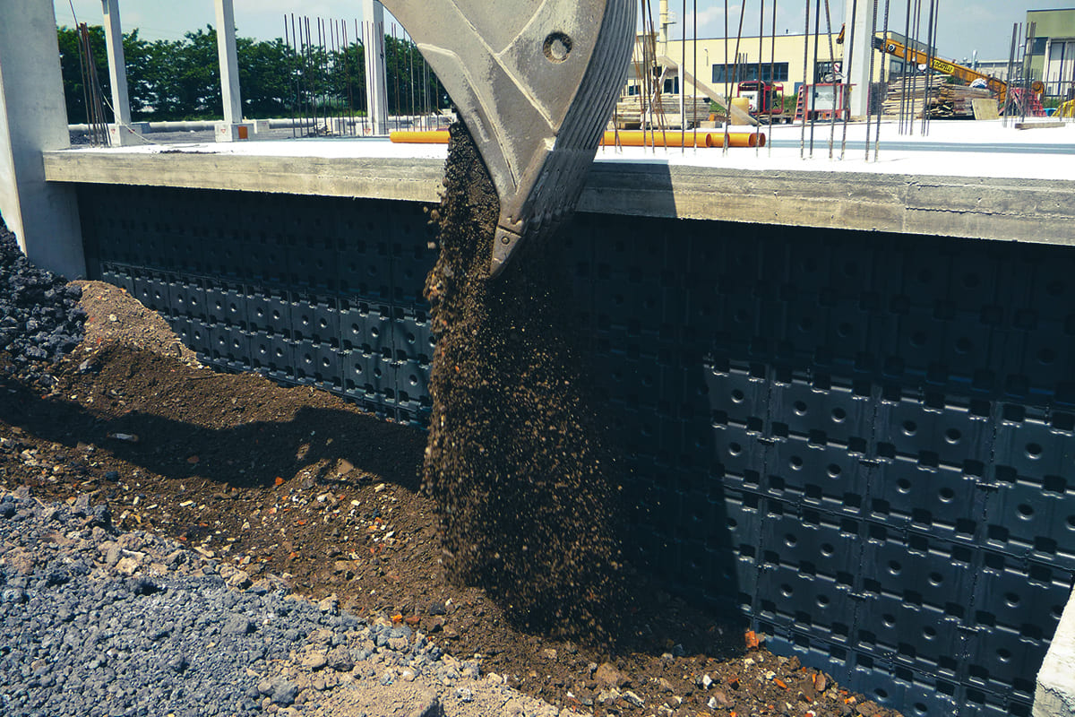 La forma y la composición especial de Skudo aseguran su resistencia a cualquier tipo de terreno utilizado para el relleno.