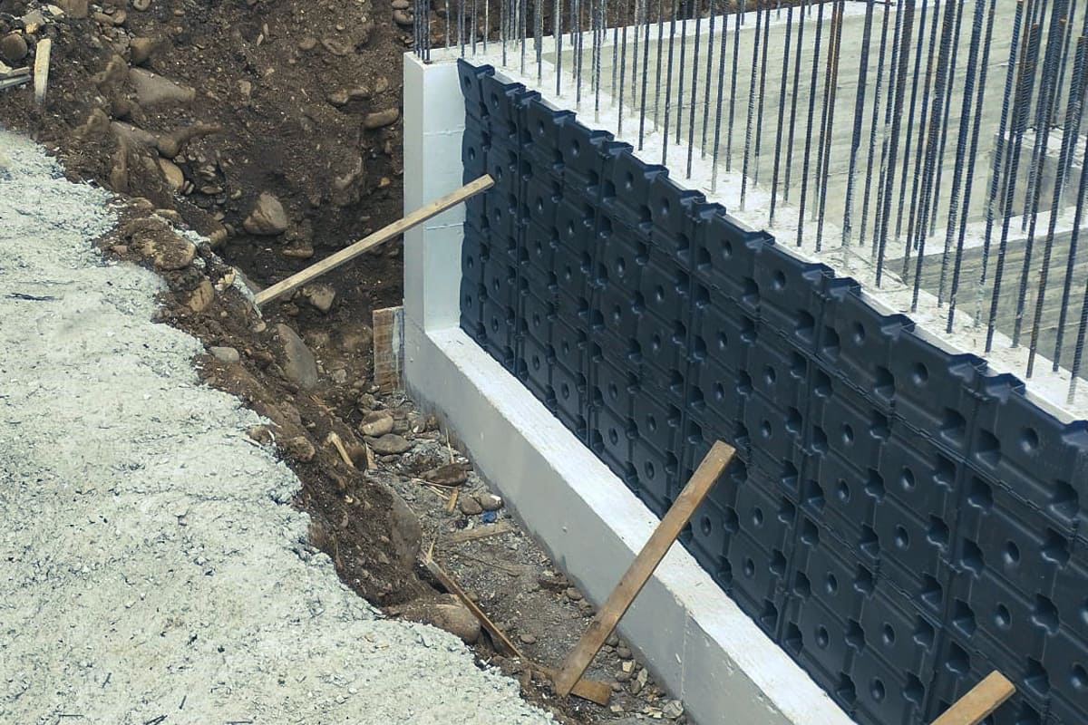 Se recomienda la creación de un canal en la base del muro para recolectar el agua drenada, sobre el cual se colocará Skudo.